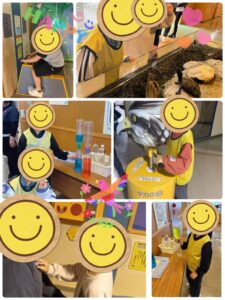館内には、ミニ水族館や昔遊びコーナー、生き物や環境をテーマにした科学展示などがあり、子どもたちはどのコーナーでも目をキラキラさせながら夢中に。水槽に顔を近づけてじっくり観察したり、初めて見る展示に興味津々で「これなに?」とたくさんの発見を楽しんでいる姿が印象的でした(‘ω’)